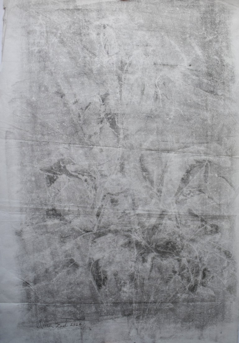 Although in her latest series, “Two Spirits,” she continues to use previous plant forms, this time more than anything else, she narrates the passage of time and erosion. In some works, thin layers of paper are placed on top of each other, and each design, like a transparent soul, also shows the underlying layer, a process that on the one hand emphasizes the passage of time and on the other confronts the audience with a kind of uncertainty.