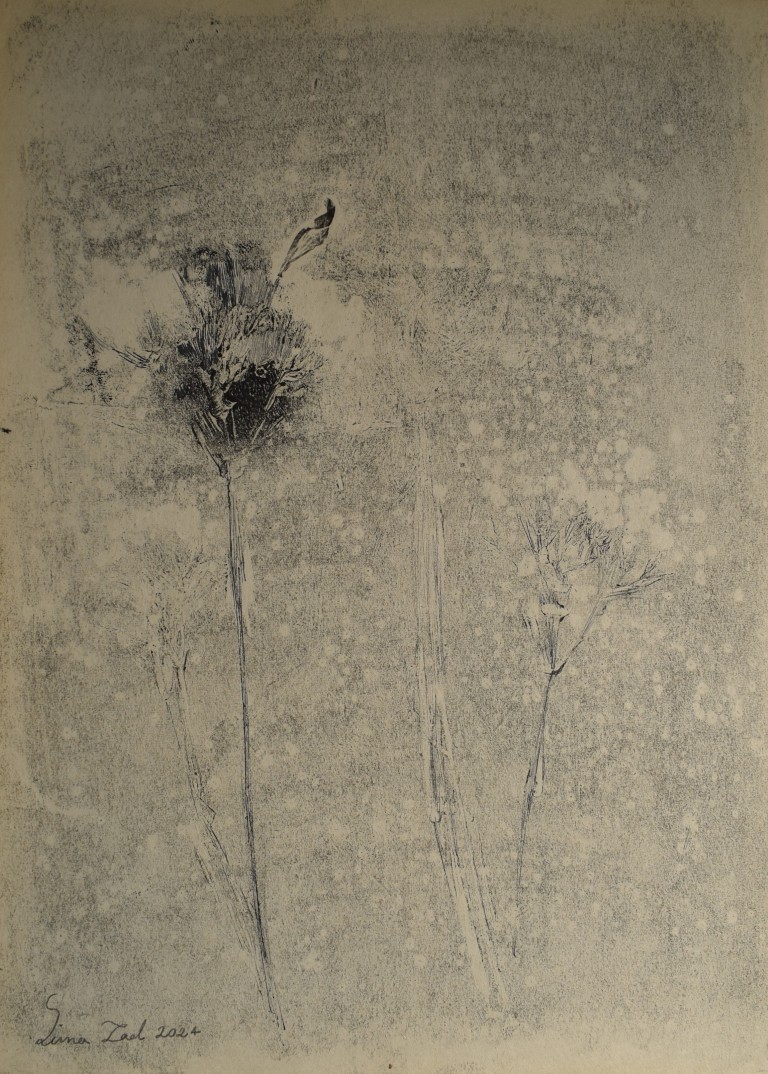In this collection, the artist does not depict plants but their fading beauty and the memory of their greenery, a philosophical experience of being and then forgetting and fading away.